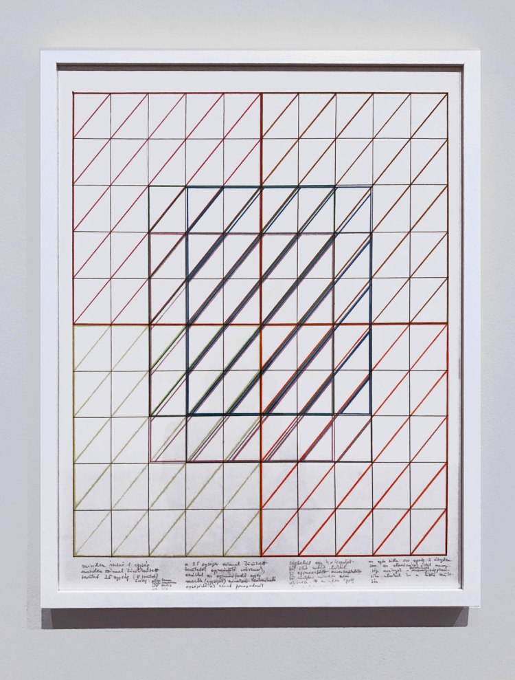Maurer graduated as a Graphic Designer from the Hungarian Academy of Fine Arts in 1961. As she began her creative practice she joined forces with other artists in Hungary, during the years of communism in 60’s and 70’s. From 1975-77 Maurer collaborated with the musician/composer, Miklós Erdély on The Creative Practices Study Circle, initiating and exploring experimental art inquiries and processes. Maurer’s emphasis on geometric and math systems are a natural by-product of this time. Her exploratory nature led to her embrace of a wide range of media and forms. Her work takes the shape of scientific inquiry twinned with the playful approach of game designer.